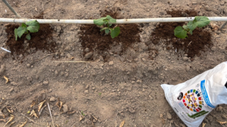 今日はきゅうり、すいか、ミョウガの植付け😊そして仕上げに竹と茶殻を混ぜた堆肥『すごエコかぐや』フリフリ…ミョウガとスイカは、ちょっと実験⚖️・一方はエコかぐやを撒いて・一方は何もしない経過や結果は改めてレポートします🙆